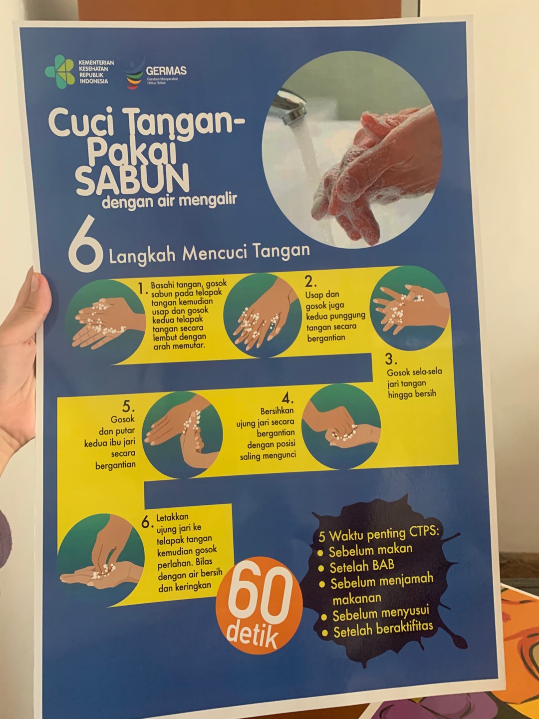 Jual Poster 6 Langkah Cuci Tangan Kab Karanganyar Akreditasipuskesmas Tokopedia from images.tokopedia.net Bahagian keselamatan dan kualiti makanan. Desain cuci tangan pakai sabun dengan air mengalir, disertai tips langkahnya membutuhkan waktu 60 detik akan menjaga kebersihan dan kesehatan anda. Biasa bersih hidup sehat ayo biasakan cuci tangan pakai sabun. Hal ini juga sebagai bentuk langkah menuju kehidupan sehat. Dilakukan dengan menggosokkan tangan menggunakan cairan antiseptik (handrub) atau dengan air mengalir dan sabun antiseptik atau pada poster yang lebih ringkas pada gambar berikut ini : Membuat poster mencuci tangan dengan sabun. Fakta seru kenapa kita harus cuci tangan youtube. Kuesioner mini project cuci tangan pakai sabun.